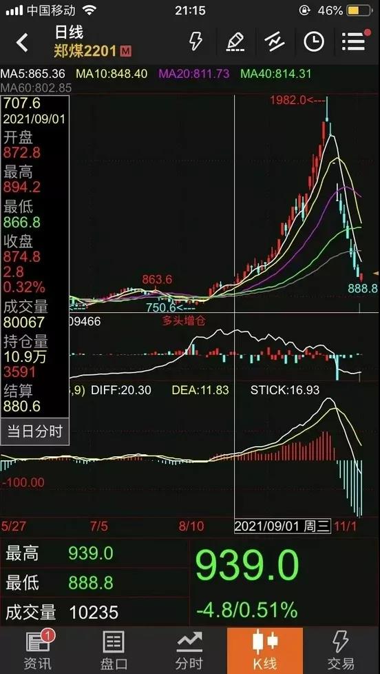 10月初,有不少投资人认为动力煤的价格遭到了爆炒,开始与多头进行殊死搏斗——开空单。然而,这些人无一不被“血洗”,空头悉数爆仓,血本无归。一个微博大V,开了400手空单动力煤,被逼空的上涨行情打爆仓了,短短几个交易日,1500万元保证金全部亏完,可谓是损失惨重。