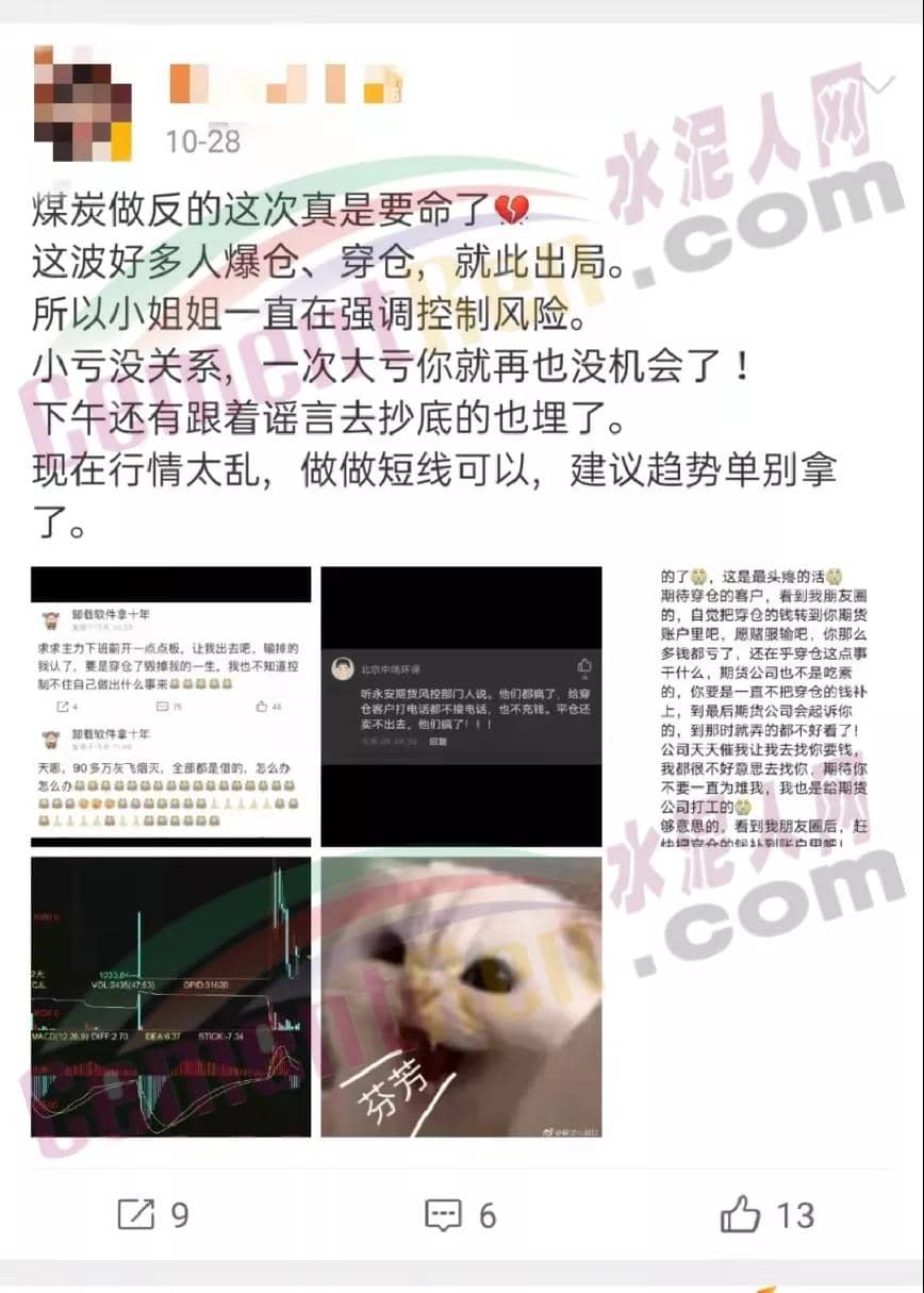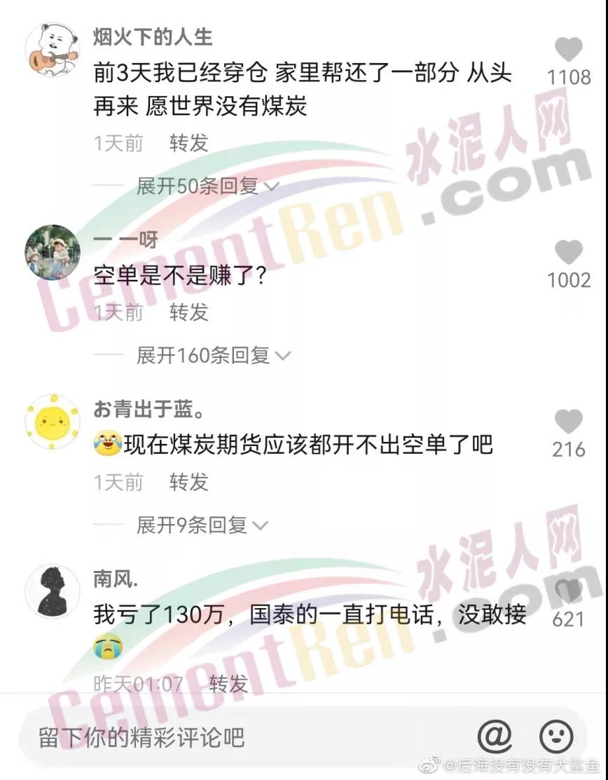 与此同时,社交平台众多投资者纷纷诉苦,表示煤炭期货腰斩只要几天时间,爆仓的人却不计其数。