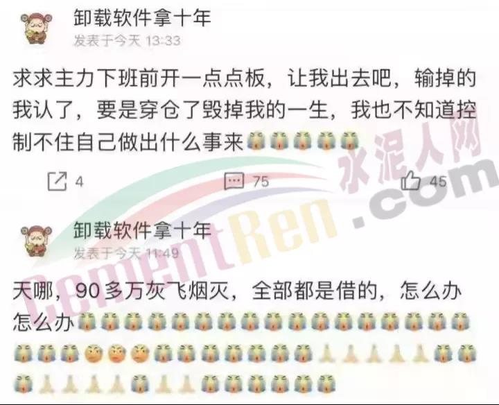 部分网友表示已经穿仓,亏了130万元,基金公司一直打电话没敢接;还有人表示,家里还帮了一部分,但仍然损失惨重,惹得众多网友不禁掬一捧辛酸泪并为这些投资者送上一曲“从头再来”。