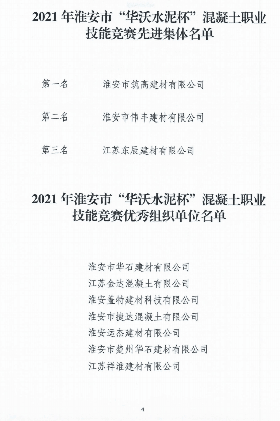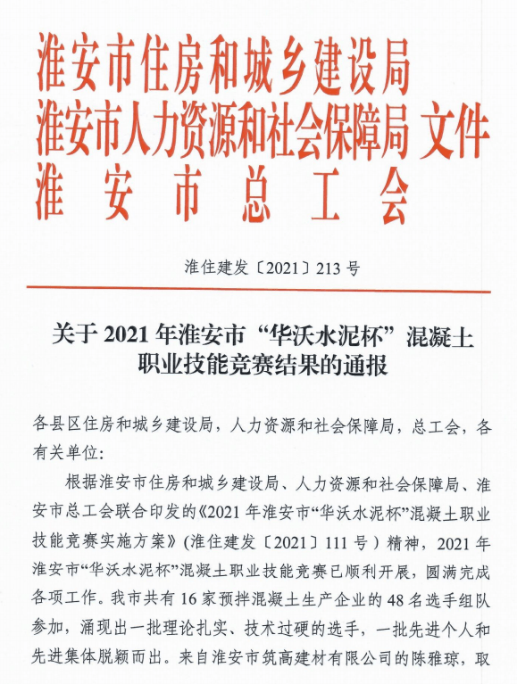 日前,2021年淮安市“华沃水泥杯”混凝土职业技能竞赛已圆满完成各项工作,共有16家预拌混凝土生产企业的48名选手组队参加,涌现出一批理论扎实、技术过硬的选手,一批先进个人和先进集体脱颖而出。