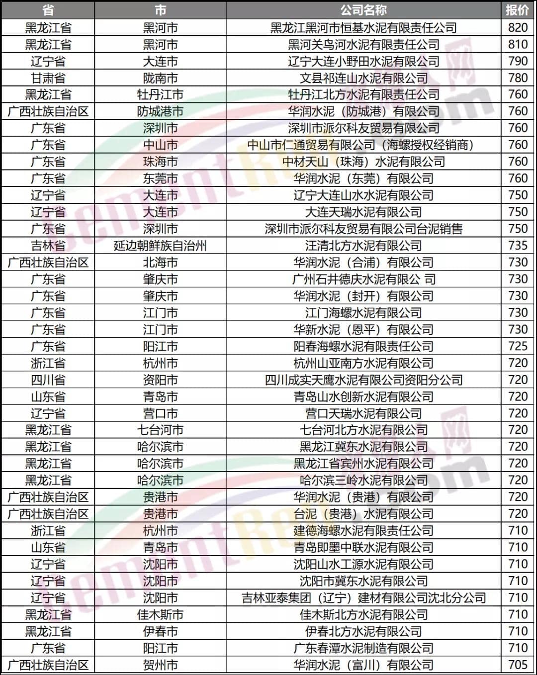 市场反馈,随着错峰停窑计划的逐步执行,加上部分工地项目年底赶进度,部分区域水泥需求将有所增加,为提升盈利,区域主要品牌企业将陆续上调水泥价格。