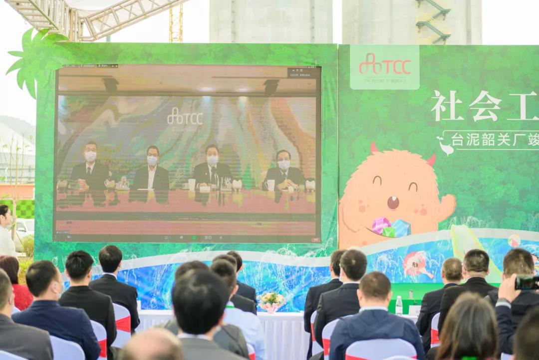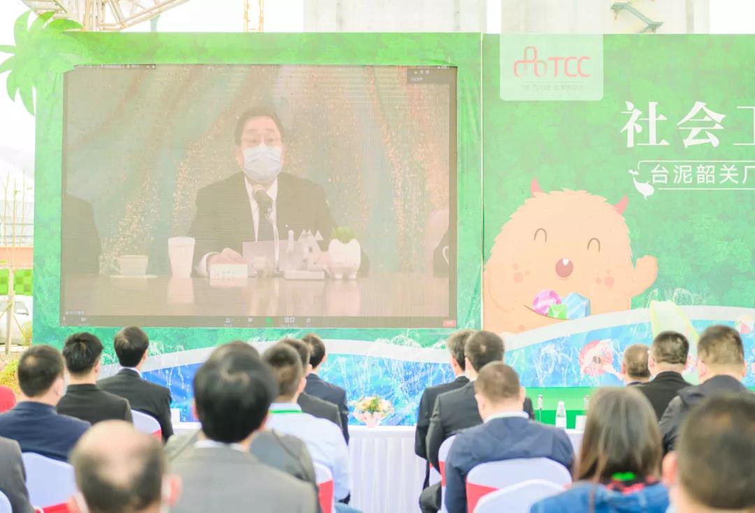 由于疫情关系,身在台北的台泥集团董事长张安平率领高管团队,通过视频连线向前来参加韶关厂典礼的领导嘉宾致谢。他表示:“水泥是一项取之于大地、用之于人类文明的事业。迈入75周年的台泥,从传统的水泥公司向全神贯注处理人类文明与大自然间复杂关系的绿色环境工程公司跨越。75年来,台泥的同仁们一直在坚持做应该做而且对社会值得做的事。韶关厂的落成为台泥的75周年庆献上最好的礼物,它将成为台泥在中国大陆的一家示范工厂,积极承担处置城市废弃物的责任,并肩负起推动工厂与社区共荣共绿发展的使命。”