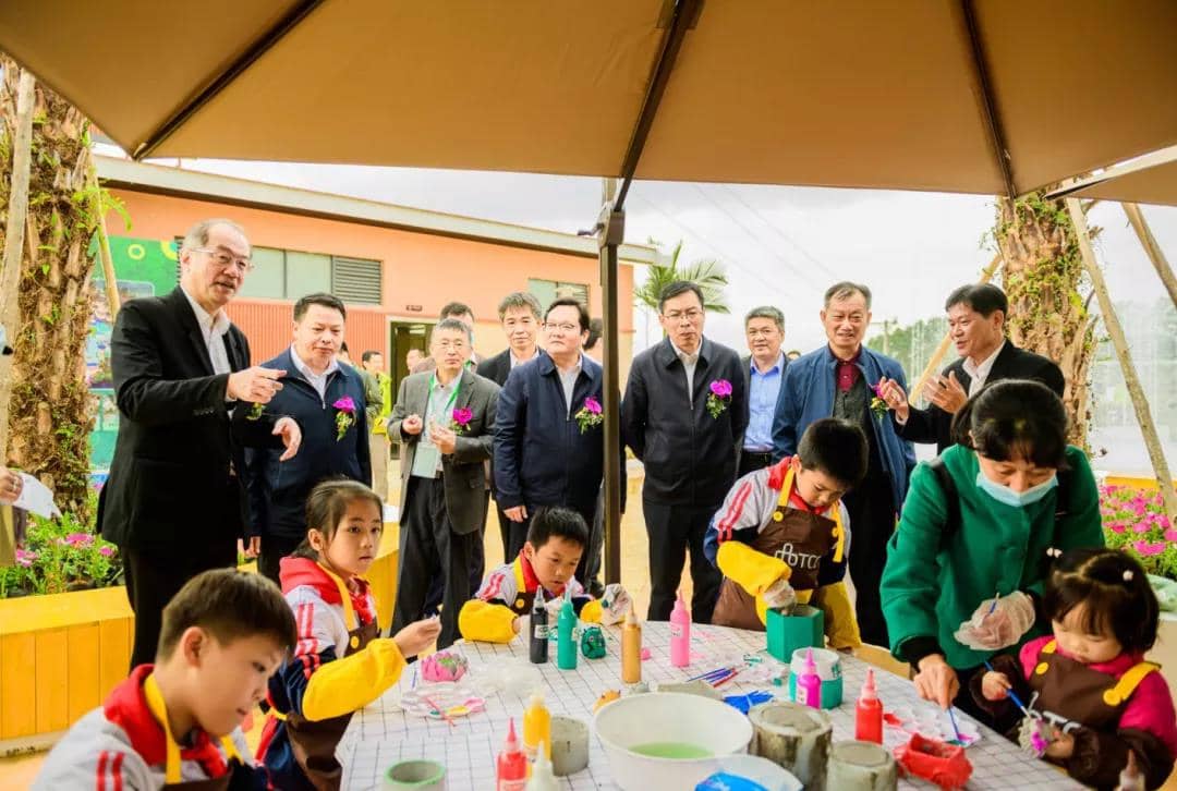 众嘉宾在台泥戏水乐园参观小学生在水泥手作工作坊彩绘作