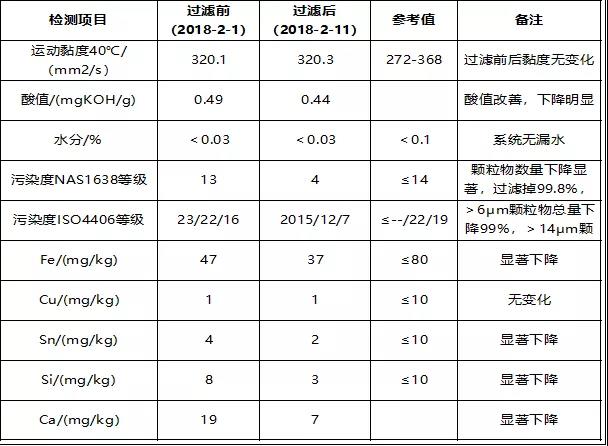 冀东水泥股份有限公司(以下简称“冀东水泥”)一直注重设备润滑的管理工作,在设备润滑管理、保护环境、成本控制等方面均严格要求,但这些措施还不能从根本上解决问题。为此,冀东水泥采用了西西延森过滤器(天津)有限公司(以下简称“西西延森”)精密过滤技术,对厂区内原使用的齿轮油、液压油、汽轮机油进行过滤处理。具体处理效果如下: