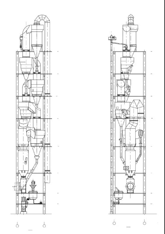 在这台窑尾预热器中,各级旋风筒的下料管均采用“微动型锁风阀”;连接管道中采用“低阻力撞击扩散式”撒料装置。预热器中,除了窑尾烟室外,所有下料管均没有设置空气炮。