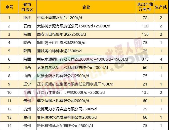 据水泥人网了解,为响应国家淘汰落后产能、落后工艺,各大水泥企业积极退出高能耗低产能水泥熟料生产线,大规模的淘汰水泥行业落后产能。