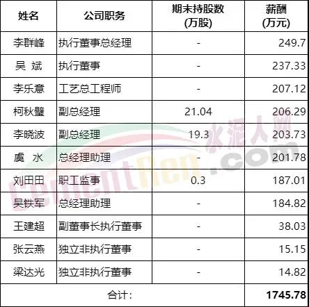 与贵州茅台齐名的“水泥茅”海螺水泥2020年高管年薪从14.82万元~249.7万元不等。12位高管年薪合计1745.78万元,平均158.71万元/年。
