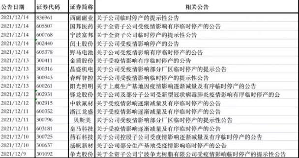 12月13日0-24时,新增确诊病例45例,其中杭州市2例、宁波市4例、绍兴市38例、境外输入1例(刚果金输入),已排查密切接触者均已实施集中隔离。浙江全省已累计纳入隔离管控540430人,其中集中隔离52824人,居家健康观察21835人,日常健康监测465771人。近20家A股上市企业发布停产公告,且未明确复产时间。