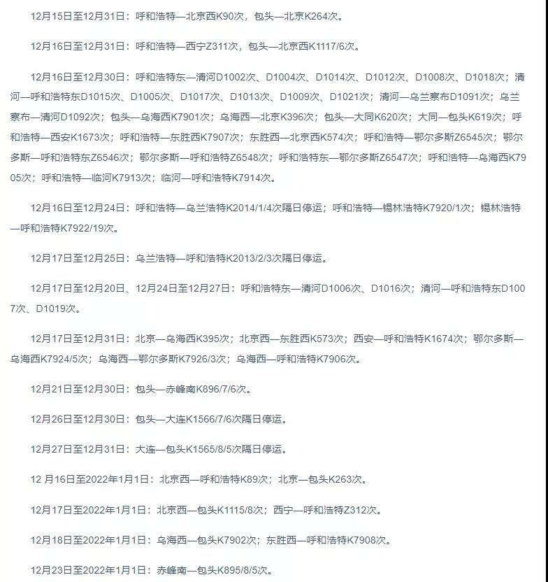 道路客运方面,省际客运班线停运151条,市际客运班线停运357条;杭州萧山区、宁波镇海区、绍兴上虞区人员严格限制通过铁路出省,杭州、宁波、绍兴等3个地市其他县(市、区)的人员出省必须持有48小时内核酸检测阴性证明。以上中高风险涉疫地区出行要求执行时间将一直延续到2022年3月15日。