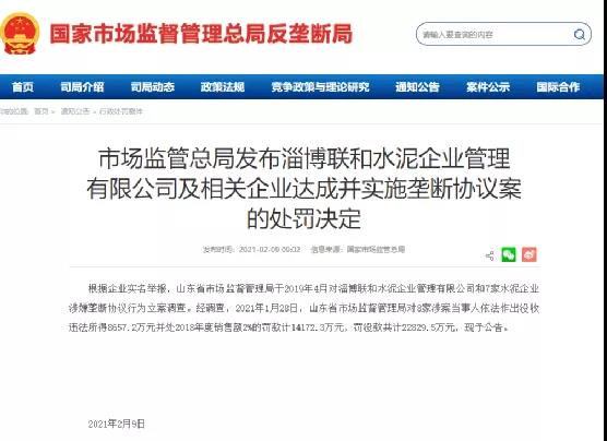 四川省市场监督管理局官方网站发布出6份《行政处罚决定书》,对四川省水泥协会及多家水泥企业违反《中华人民共和国反垄断法》的行为进行处罚,合计处罚金额达5900多万。