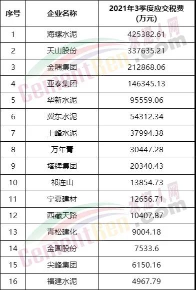 从上述数据来看,2021年3季度水泥A股上市公司中海螺水泥应交税款排名第一。