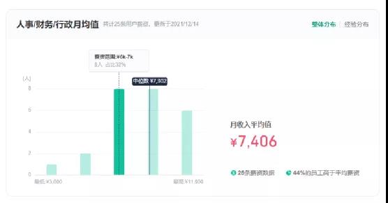 人事行政岗位25条用户薪资中最低3000元/月,最高11600元/月,其中44%的员工高于平均薪资。其中拥有4年经验的HR月薪为10600元,拥有5年经验的会计月薪10600元,拥有9年经验的行政主管月薪10600元,拥有7年经验的行政经理月薪11600元。