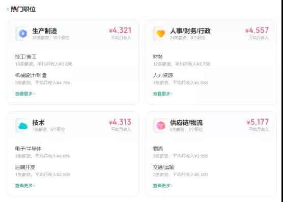 其中月薪最高7807元,最低1056元,热门职位中生产制造平均月收入为4321元,供应链/物流为5177元。拥有2年经验的生产操作员,月薪7807元,无经验的普工操作工月薪1500元。