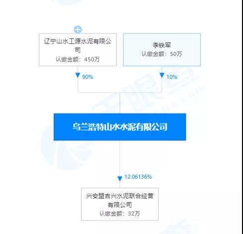 天眼查数据显示,乌兰浩特山水水泥有限公司为山东山水水泥旗下辽宁山水工源水泥有限公司控股企业。