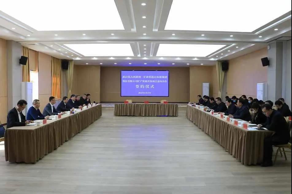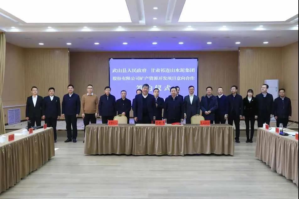 1月17日,甘肃省天水市武山县政府与甘肃祁连山水泥集团股份有限公司举行矿产资源开发项目意向合作签约仪式。甘肃祁连山水泥集团股份有限公司总裁刘继彬,武山县委书记王新强出席签约仪式。县委副书记、县长王志成与甘肃祁连山水泥集团股份有限公司副总裁刘开禄签订《矿产资源开发项目合作意向协议》。县委常委、副县长赵百祥主持签约仪式。