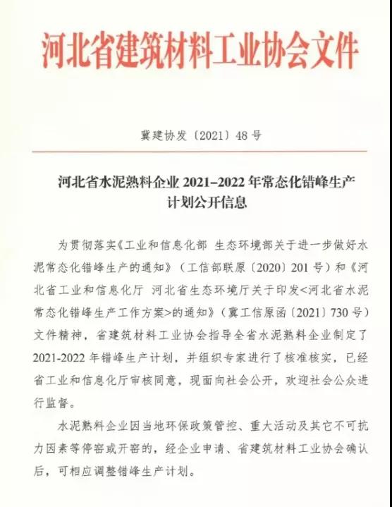 截止2021底共有26个区域发布了常态化错峰生产计划,其中基准停产天数最长达180天。河北金隅鼎鑫水泥有限公司2000t/d生产线2022年非采暖季错峰30天,采暖季错峰260天,合计停产天数达290天,为各区域停产天数最长的水泥企业。