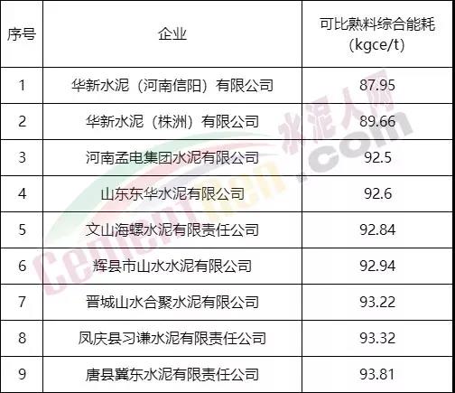 日前工信部发布《2021年度重点用能行业能效“领跑者”企业名单》水泥行业9家企业入选,华新水泥(河南信阳)有限公司以可比熟料综合能耗87.95kgce/t位列第一位。