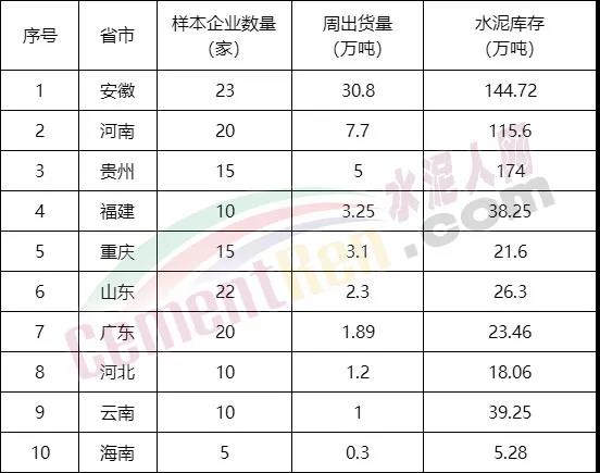 从各区域水泥出货量来看,福建、河北、河南、云南、贵州、重庆、山东、海南、广东、安徽等区域出货量较10日前稍有增加,市场略有回升。