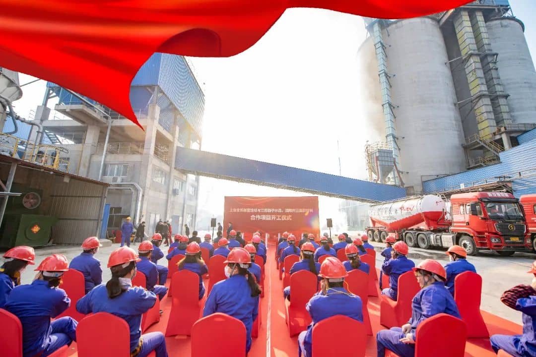 2月26日上午,上海宝钢新型建材与江苏扬子水泥、溧阳市三盛新材料合作项目开工仪式在江苏扬子水泥有限公司顺利举行。