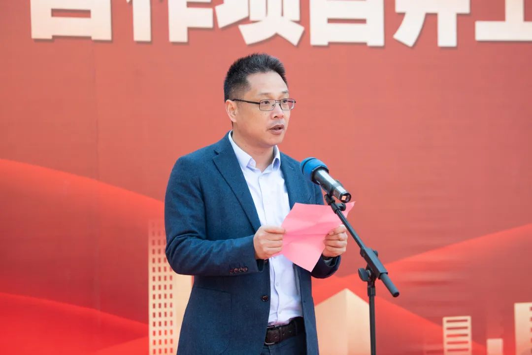各位领导上台共同启动本次合作项目,上黄镇党委书记强建方宣布本次合作项目正式开工。