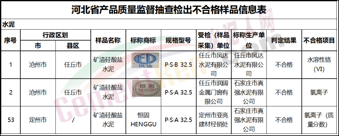 日前,河北省市场监管局发布《关于二月份产品质量监督抽查结果的通告》称,为进一步加强河北省产品质量安全监管,切实维护消费者合法权益,河北省市场监管局采取购买样品方式,抽查检测电线电缆、建筑用钢筋、水泥、化肥等产品,检出不合格样品83批次,其中,抽查水泥产品检出不合格样品3批次。具体《通告》如下:
