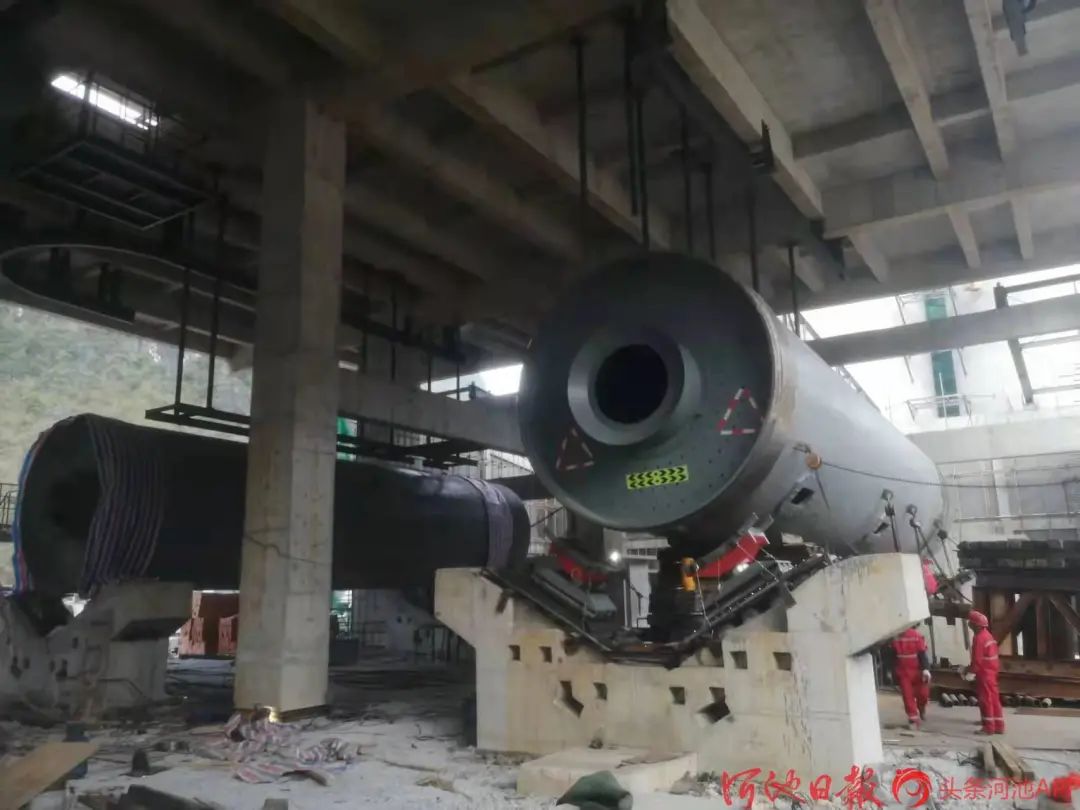 3月1日,位于都安瑶族自治县龙湾乡中旧村境内的都安上峰新型干法熟料水泥项目生产基地内,工人们正在紧张有序安装生产设备中。