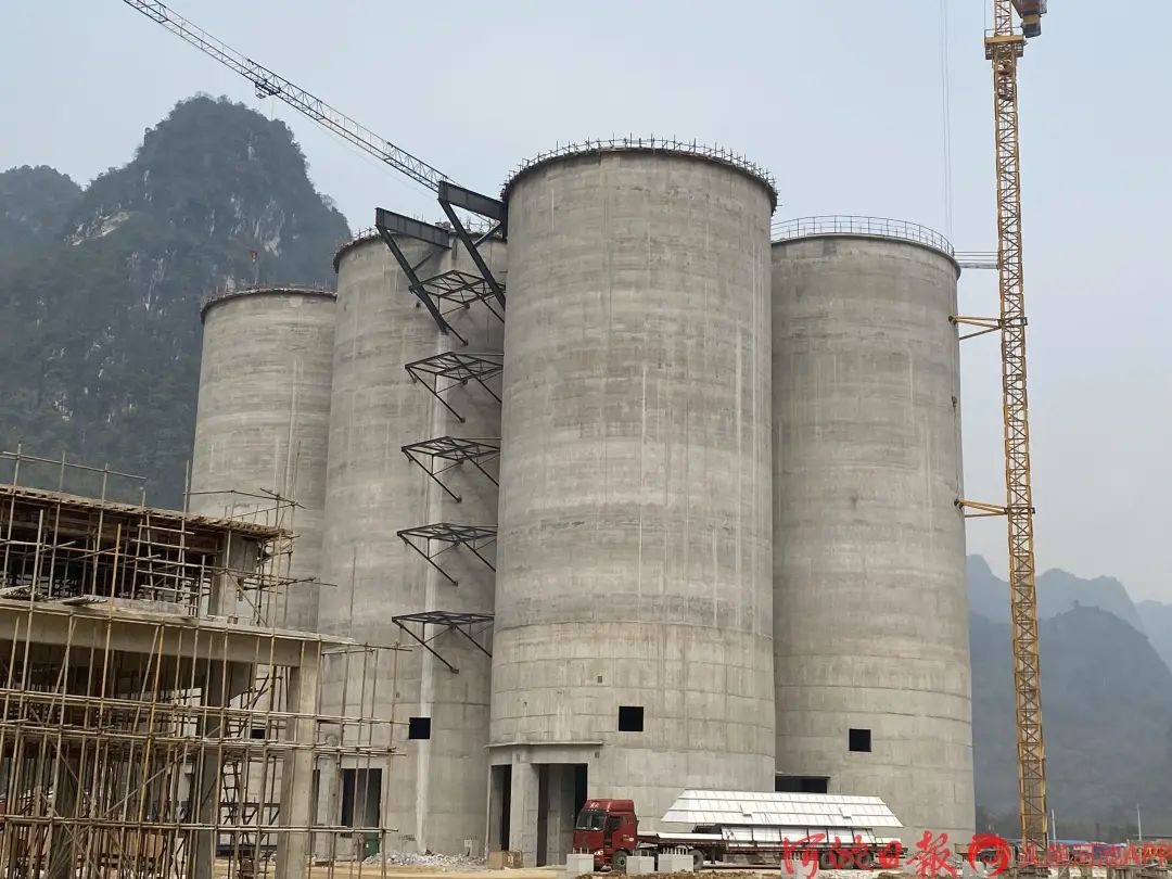 一期项目于2020年9月21日开工,截至目前,土建工程基本完成,主机设备安装中,今年1至2月完成投资约1亿元,累计完成投资约7亿元,预计在2022年5月竣工投产。项目投产后每生产一吨水泥熟料提取2元资金作为都安县巩固脱贫攻坚成果和乡村振兴专项资金,支持都安巩固脱贫攻坚成果和乡村振兴工作。