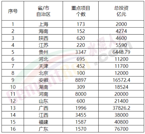 16省市自治区重点项目数量达到32173个,总投资金额超32万亿元