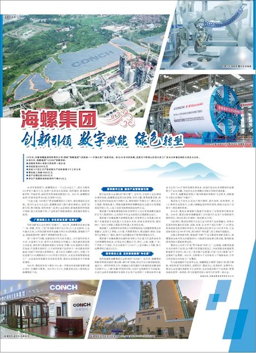 科技创新是企业发展的“压舱石”。2021年,海螺集团全面实施“一体、两翼、双发、三轮”的创新发展行动计划,以工业互联网、工业大脑为主体,以科技创新和绿色金融为两台发动机赋能,落地数字产业、新能源新材料、碳资产管理碳科技等公司。