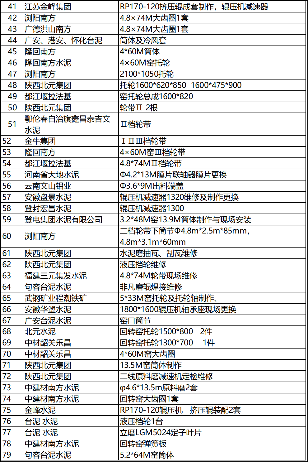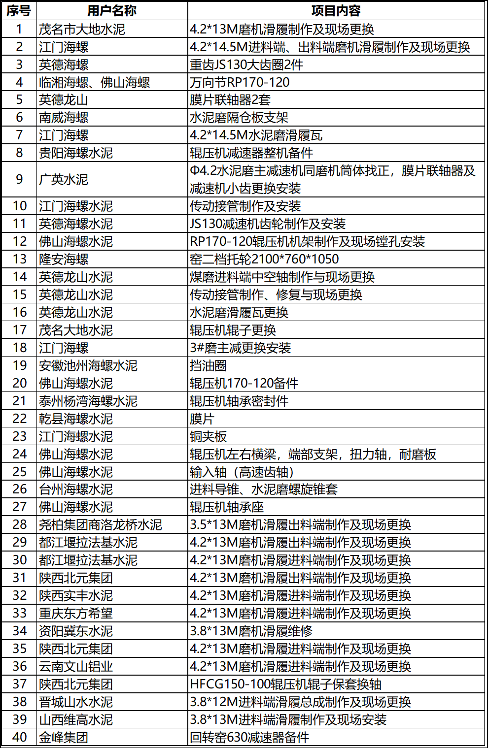 截至目前,超盛重工已经针对海螺茂名大地水泥有限公司、都江堰拉法基水泥有限公司、陕西尧柏水泥有限公司、陕煤集团北元化工水泥有限公司、海螺江门水泥有限公司、东方希望等水泥百强企业进行了技改,在保证水泥企业正常生产运行的情况下,进一步帮助水泥企业创造更大的利润空间。