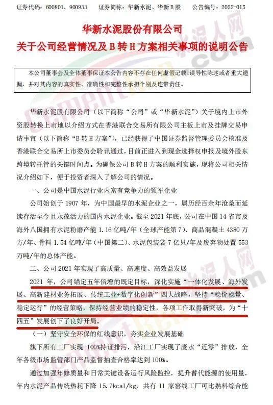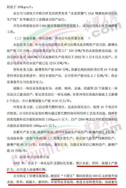 日前,华新水泥发布公告对其2022年经营计划予以公布。公告中提到: