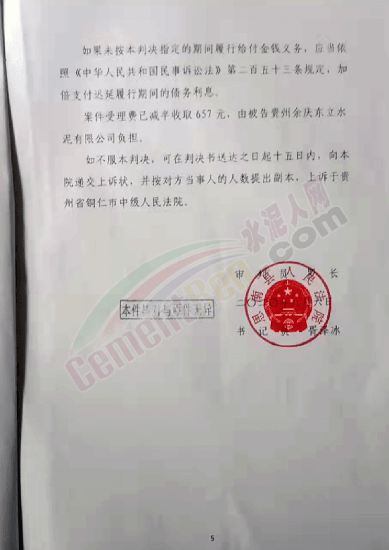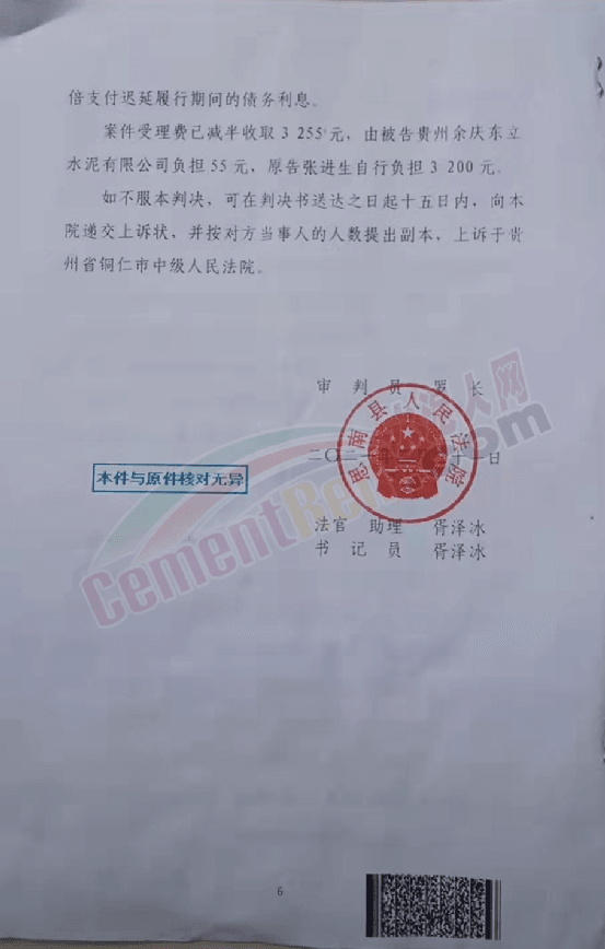 日前,水泥人网接到贵州省铜仁市思南县塘头镇川硐村黑石屯组建材经销个体户张进生反馈称,因销售不合格水泥被客户诉之法院,导致名誉受损,水泥销售生意难以维系。