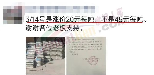 企业销售负责人连发多份通知提示,3月14日是涨20元/吨,不是45元/吨。