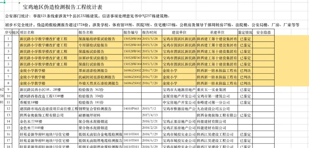宝鸡一千多份工程质量检测报告造假,涉及学校、体育馆、医院、住宅楼等