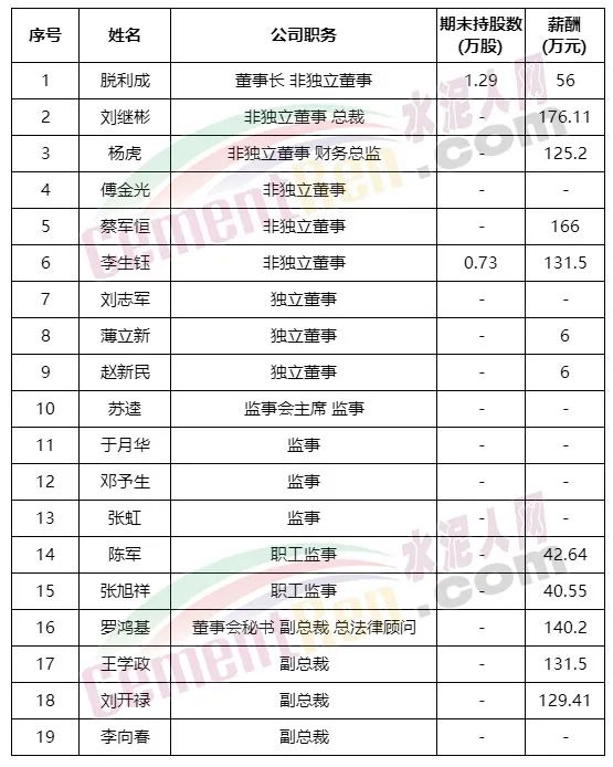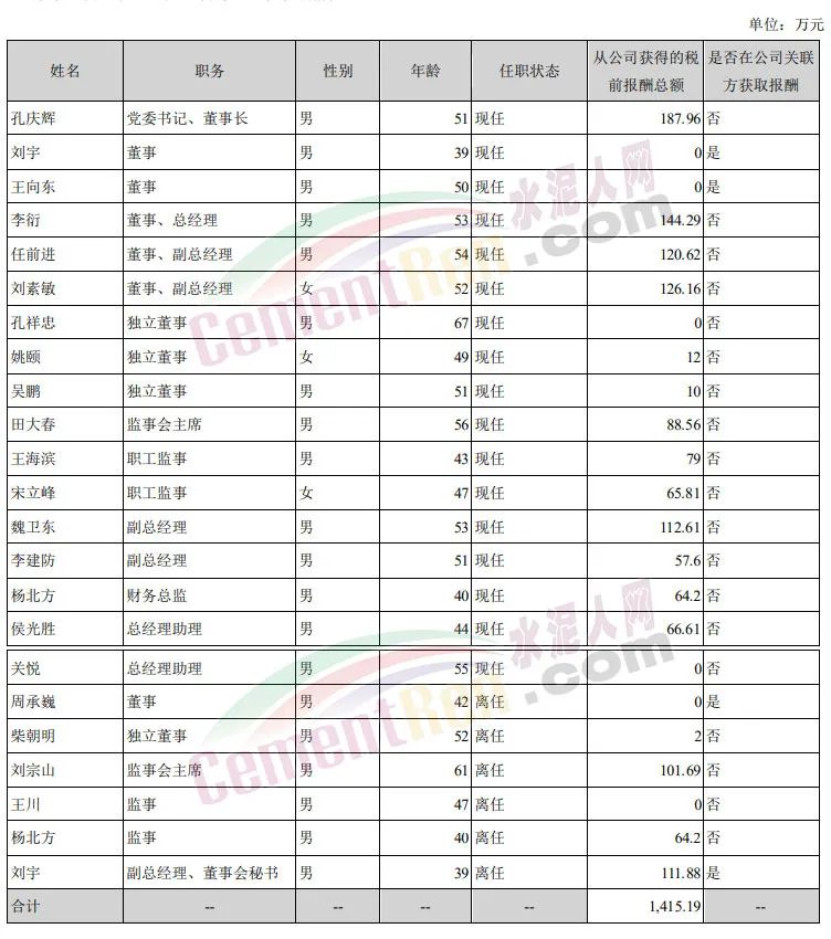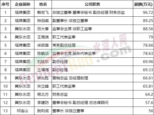 日前,水泥行业冀东水泥、祁连山、塔牌集团上市公司陆续发布2021年年度公告,公告中针对高管薪酬及员工工资均有提及。