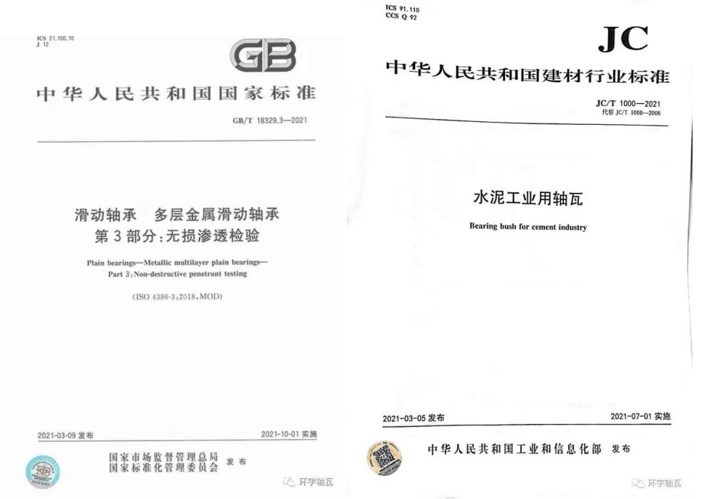 目前,由环宇轴瓦参与制定的三项滑动轴承国家标准已发布: