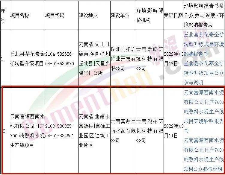 同日,云南省生态环境厅发布《关于2022年03月17日建设项目环境影响评价文件受理情况的公示》称,