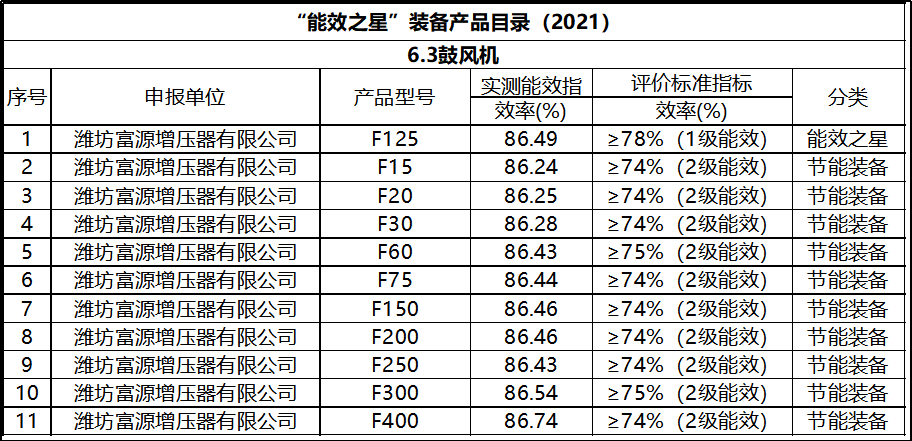 与此同时,潍坊富源增压器有限公司(以下简称“潍坊富源”)自主研发的的12款型号空气悬浮鼓风机作为《国家工业节能装备及“能效之星”装备产品目录(2021)》的入围者,一时间在水泥行业名声大噪。
