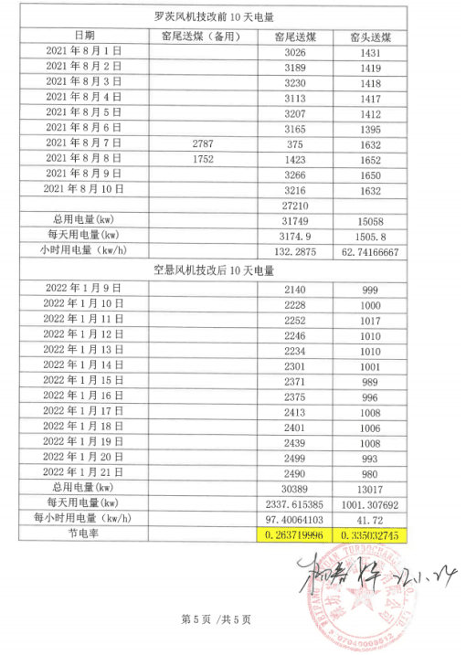功夫不负有心人,技改后的风机在节能降本领域方面实现了巨大突破: