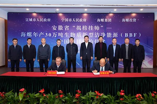2022年3月26日,海螺投资与宁国市政府在宁国水泥厂签署了年产30万吨生物质新型洁净能源(BBF)项目协议。