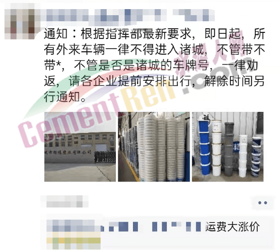 日前山东诸城企业收到通知,自即日起,所有外来车辆一律不得入境,不管带不带*,不管是不是诸城的车牌号,一律劝返。