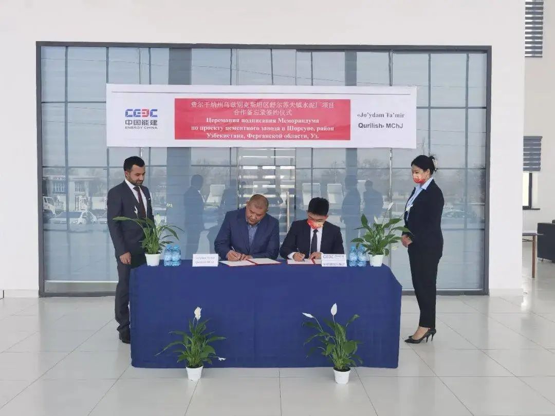 中国能建国际集团与乌兹别克斯坦乔伊丹姆房屋建设有限公司签署费尔干纳州乌兹别克斯坦区舒尔苏夫镇水泥厂项目合作协议。费尔干纳州州长参与见签。