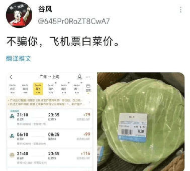 还有人说,现在何止是房子,连飞机票都是白菜价了。平时,大家都吐槽机票贵,现在可好了,飞机票白菜价?你想买吗?
