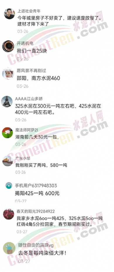 3月17日,岳阳部分主流品牌水泥价格跌40元/吨