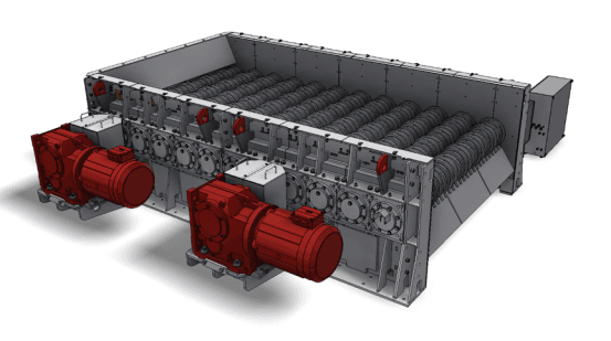 为了更好的进行破碎前除泥并得到高质量的成品,该项目还在哈兹马克的初级反击式破碎机前配套了哈兹马克的辊轴筛。哈兹马克的辊轴筛处理能力最大可以达到5000tph,能稳定高效的筛分出原料里的夹层泥土和细料,提高整个系统产量并更好的保证骨料生产线高品质成品。