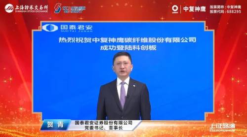 国泰君安党委书记、董事长贺青在致辞中对中复神鹰的成功上市表达了祝贺,他希望中复神鹰能够充分把握本次上市机遇,借助资本市场力量,为广大投资者创造丰厚回报。并表示国泰君安将继续当好资本市场“看门人”,切实履行保荐义务,做好中复神鹰上市后的持续督导和综合服务工作,助力中复神鹰建设成为规范运作的上市公司模范。