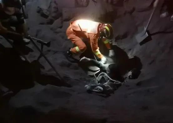 其中一名男子只剩头部露在外面,身子全部陷入沙子之中,意识模糊,奄奄一息。救援人员在现场得知有工作人员曾试图救援过,但是没有成功。