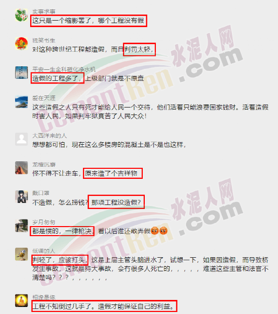 日前水泥人网发布了一则有关港珠澳大桥混凝土检测报告造假的消息(相关链接:胆子太大!港珠澳大桥混凝土检测造假揭秘……),消息一出引起众多行业人士的关注。多数高赞评论提到,这只是一个缩影,现在很多工程都有假;如此判罚量刑太轻。也有评论称,工程不知倒过几手,造假才能保证自己的利益。