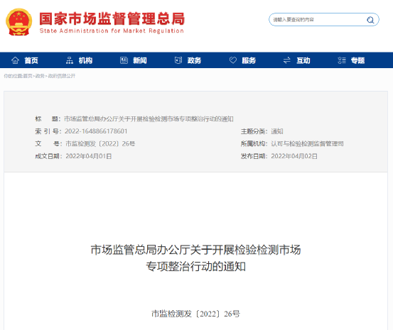 日前,水泥人网自市场监管总局获悉,为加强检验检测机构监管,严肃查处不实和虚假检验检测等违法违规行为,净化检验检测市场环境,市场监管总局将于2022年4月至7月底开展检验检测市场专项整治行动。