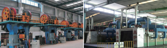 国镁耐火拥有1700°C-1850℃超高温隧道窑2条,镁质不定型耐火材料生产线1条,原料生产线2条,矿山1座,镁碳砖生产线1条。充足的料仓及成熟的自动配料系统保证高精度配料;德国EIRICH高效强力混砂机,提高混料效能;世界先进的液压机压制砖坯,坯体均匀,尺寸精确。